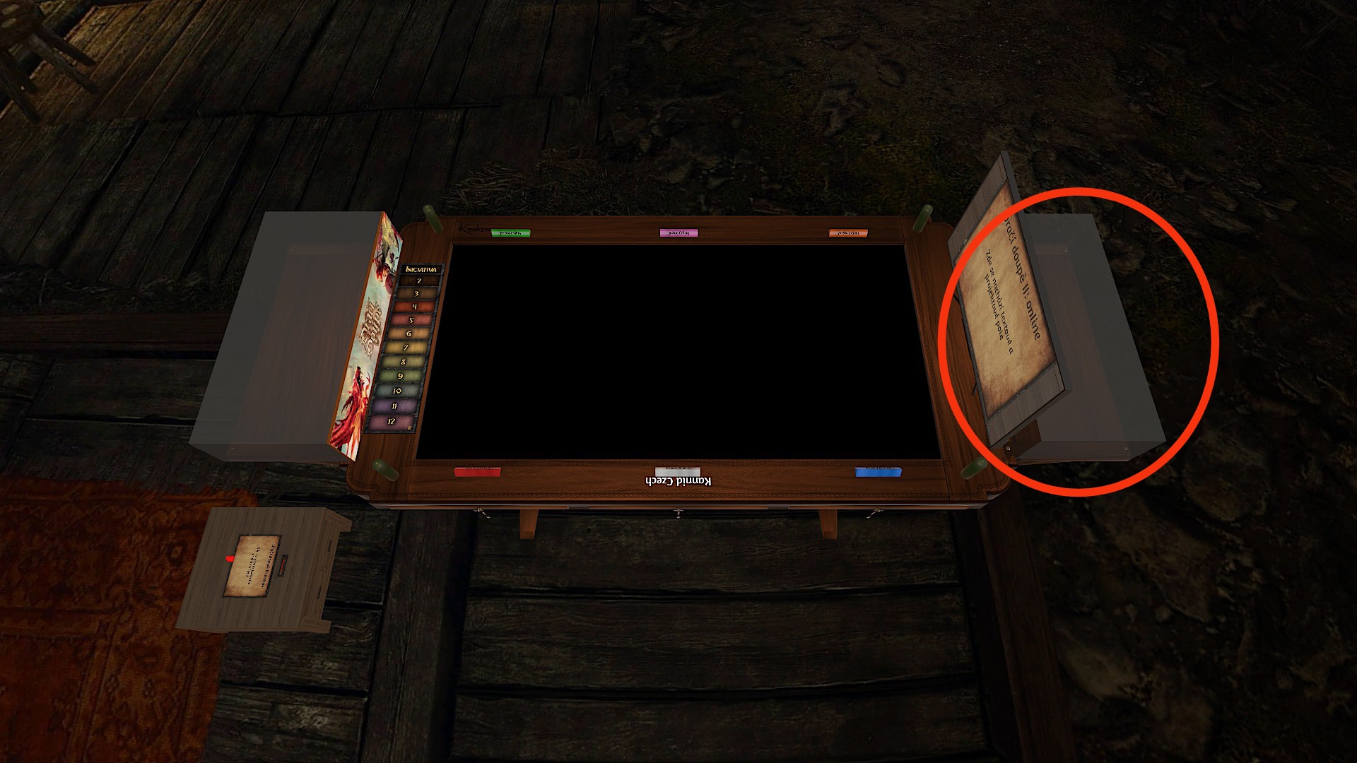 Při spuštění modifikace, ještě před výběrem role, uvidíte, že herní stůl obsahuje dvě skryté zóny. První slouží průvodci k ovládání dobrodružství a druhá ukrývá různé herní nápovědy a komponenty. V této části manuálu se zaměříme na skrytou zónu umístěnou za velkým monitorem, která je určena pro nalezení různých herních komponentů a tvorbě 3D dobrodružství.